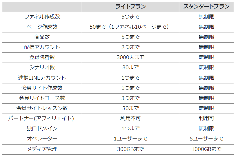 機能は一通りお使いいただくことができます。各機能の容量は大きく制限されますため、お試しや短期間でのご利用に向くプランです。